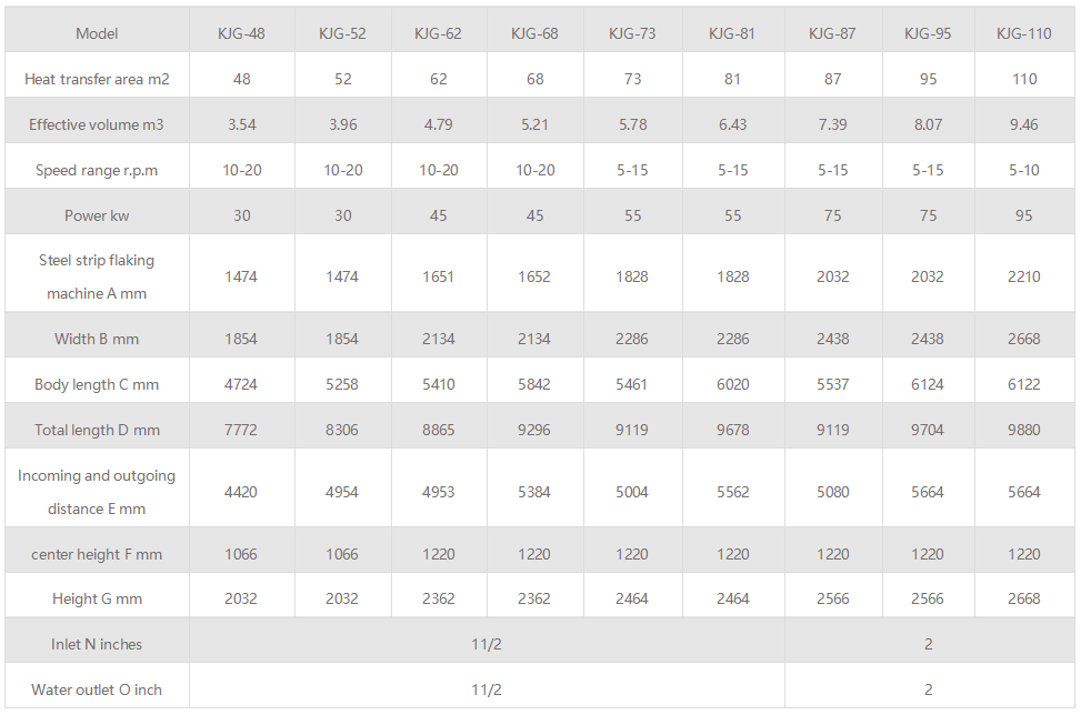 High utilization of heat energy, low energy consumption, loading capacity up to 70~80% of the cylinder volume, due to indirect heating, there is no large amount of air to take away the heat, the outer wall of the dryer and set a thermal insulation layer, evaporation of 1kg water only 1.2kg water vapor.